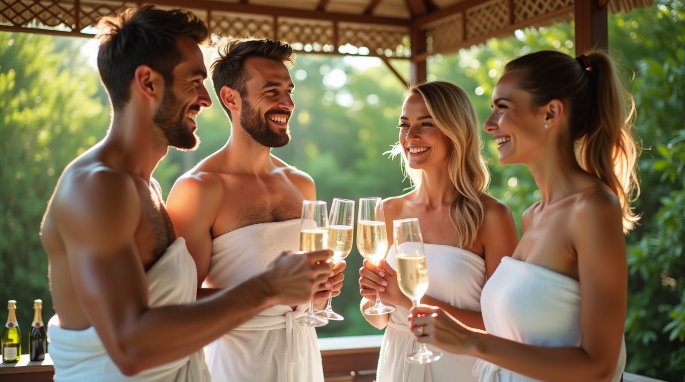 Zatímco pánové vydýchávali své uvolnění jejich partnerky se na sebe usmály. Obě se postavily, Petra se natáhla pro osušky, jednu si sama přehodila přes... Read more.
