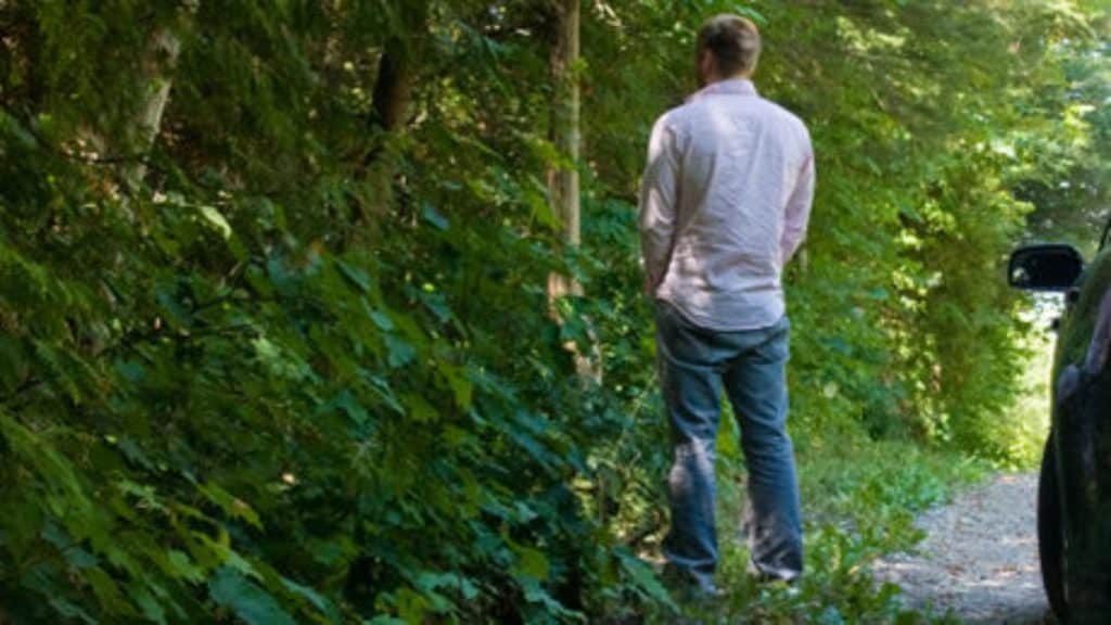 Zastavil jsem u blízkého lesa, abych si ulevil.